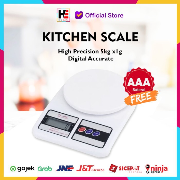 Timbangan Digital Roti Dapur GSE SF - 400- Alat timbang paling praktis.- Akurat.- Maksimal 5 kg dgn tingkat ketelitian 1 gram.- Simple dan mudah dioperasikan.- Daya 2 x baterai AAA (termasuk dlm paket penjualan).- Tampilan layar LCD digital.LCD displayAuto zero resetting / power offMode function (g/oz)Over-load /Low battery indicatorPower: 1.5V x 2 AA batteryUkuran : 25 x 19 x 5 cmBerat : 4