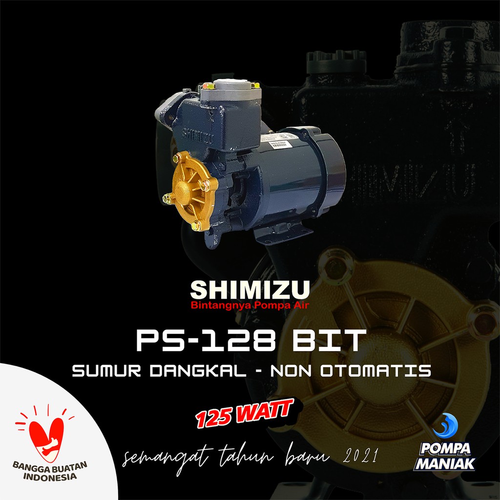 Pompa Air Shimizu PS-128 BIT / PS128BIT Sumur DangkalDeskripsi:Shimizu PS-128 BIT merupakan pompa air sumur dangkal dengan penggunaan daya listrik hanya sebesar 125 Watt serta dengan harga yang tidak terlalu mahal. Menjadikan Pompa PS-128 BIT sebagai pompa air yang ekonomis sehingga cocok untuk digunakan pada kebutuhan rumah tangga.Kelebihan:• Dilengkapi dengan Thermal Protector, yang berfungsi memotong arus listrik ketika motor melebihi panas.• Suara yang halus pada saat penggunaan• Dapat dipakai 24 jam nonstop• Memiliki total head 33 meter, disaat head 10 meter debit air yang dihasilkan 18 liter per menit, dan pada saat head 18 meter debit air yang dihasilkan 10 liter per menit.Spesifikasi:Output (W) : 125Input (kW) : 0.3Panjang Pipa (m) : 9Total Head Max. (m) : 33Head (m) : 10 | 20Kapasitas (liter/min) : 18 | 10Pipa Hisap (inch) : 1Pipa Dorong (inch) : 1Note:1. Anda dapat menghubungi kami terlebih dahulu untuk ketersediaan stok.2. Jangan ragu untuk bertanya apapun tentang produk kepada kamiTerima kasih sudah berkunjung ke toko kamiSemoga bermanfaat dan Selamat Berbe