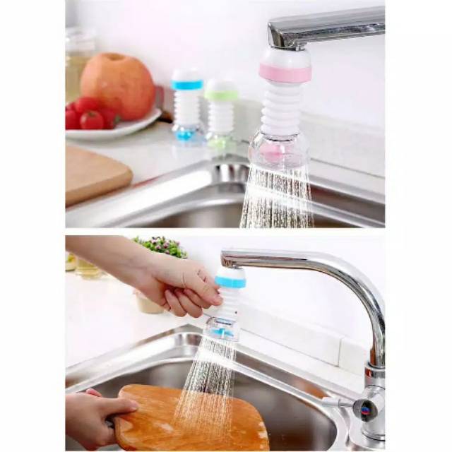 Sambungan kran ini flexible banget loh, bisa diputar hingga 360 derajat, membersihkan wastafel jadi mudah dan lebih bersih tentunya. Kran jadi bisa ditekuk dan digerakkan hingga ke sudut-sudut wastafel.Tidak hanya itu, sambungan kran ini dapat menghemat air hingga 50%, air yang keluar dari mulut sambungan kran berbentuk bunga air sehingga pemakaian air jadi lebih irit. Aliran air jadi terasa lebih deras, membersihkan piring atau makanan jadi lebih cepat dan air kran tidak muncrat kemana-mana.Material : PlastikSize : - 4.6 x 10 cm (kondisi panjang)- 4.6 x 7.8 cm (kondisi pendek)barang asli krn ada kardusnya atau kemasanya yha kak, bukan yg rejec