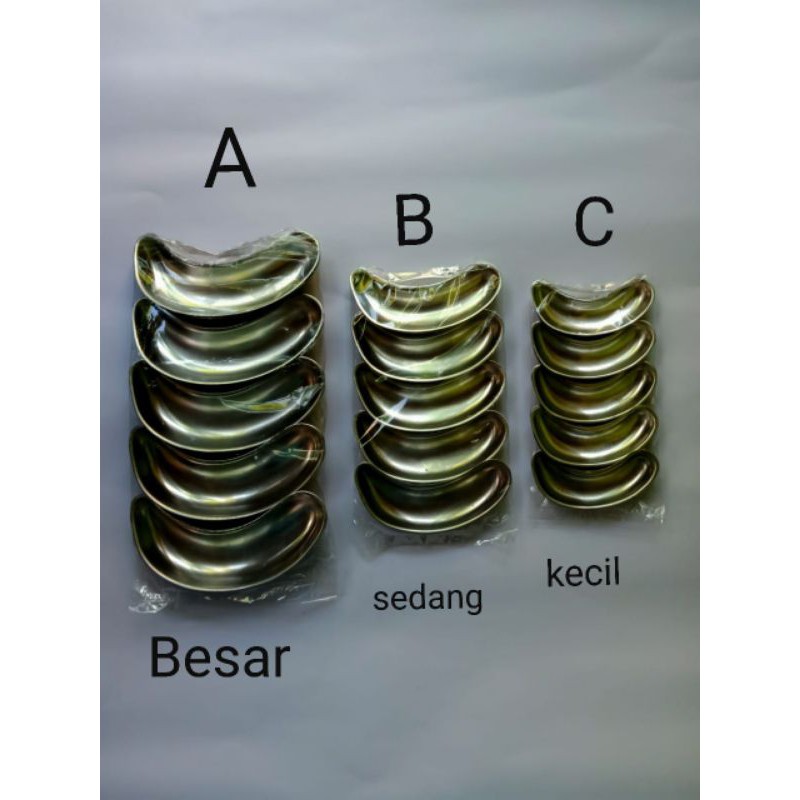 Cetakan pisangBanana cake bahan aluminium tebalHarga satu packSatu pack isi 10pcsUkuran A. 14cm x 3,5cmB. 12cm x 3cmC. 9cm x 2