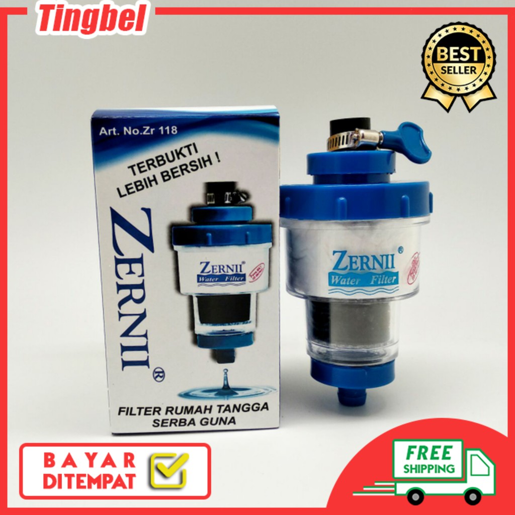 WATER FILTER ZERNII - AGAR AIR MENJADI JERNIH, BEBAS BAU dan LEBIH HIGIENISZerni Penyaring air adalah Alat sejenis saringan air dengan tingkat penyaringanyang luar biasa yangdipasangkan pada keran air yang akan membuat air bak andamenjadi SANGAT JERNIH.Dengan 3 tahap penyaringan: Kapas, saringan kasar dan karbon:1. Kapas yang dapat menyaring kotoran sampai debu-debu kecil sekalipun.2. Saringan kasar untuk menyaring sisa kotoran kasar seperti pasir. Tidak perlulagi menguras bak mandi.3. Karbon Aktif yang berfungsi untuk membasmi kuman/bakteri, menghilangkan bau,menetralisir air dari elemen berbahaya seperti pestisida, limbah detergen dll.Keunggulan alat ini:-EKONOMIS, karena kapas yang telah menjadi kotor dapat dicuci dan digunakankembali. Kapas yang digunakan adalah kapas biasa, sehingga mudah dibeli di manasaja dengan harga yang murah. Selain itu produk tahan lama karena kita tinggalmembersihkan/mengganti kapas dan karbon aktif yang baru.-Mudah dipasang, dibuka, dan dibersihkan dan sudah dimodifikasi untuk semuaukuran kran.-Dengan tingkat penyaringan yang luar biasa,terbukti efektif dan sudah teruji.- Menyaring air pada semua kondisi air : Kotoran/ karat sampai debu halus, airyang kotor, keruh kuning, berminyak, berlumut, bau,mengandung zat kapur dan zatbesi.-Karena tabung yang besar aliran air dari kran menjadi lancar dan tidak mampet.CATATAN UNTUK REFILL KOMPONEN DI DALAM ZERNI:-Anda cukup membersihkan kapas dan menambahnya, bila perlu diganti dengan kapasbiasa. kami juga menjual produk ini di etalase yg sama-Karbon aktif sebaiknya diganti baru setiap 2 atau 3 bulan sekaliDitunggu orderanya^^Happy Shopping~#onlineshopping #filterairzernii #alatsaringair #penyaringair #waterfilter