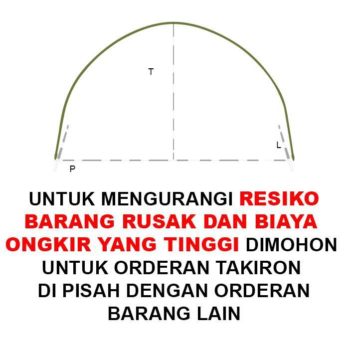 Deskripsi Takiron Tunnel Pipe 8mm x 1200mmTunnel pipe merupakan sungkup tanaman / pipa lengkungan/ mini green house yang terbuat dari besi dilapisi plastik POLIOLEFIN dan diproses dengan teknologi JEPANG membuat Tunnel pipe kuat tahan lama dan ramah lingkungan, Tunnel pipe menjadi SOLUSI yang tepat untuk mengganti Bambu alami.____________Keistimewaan1. Melindungi tanaman dari hujan dan hama.2. Ukuran dan bentuk yang seragam.3. Mudah dalam membuka plastik pada saat suaca panas/ terik matahari.4. Mudah dalam menutup plastik, pada saat hujan dan malam hari5. Plastik film bisa diganti net atau kombinasi net+plastik film____________Fungsi1. Untuk menyangga naungan (plastik atau jaring).2. Untuk melindungi tanaman dari hujan.3. Mudah dalam membuka dan menutup plastik.Perhatian : Jika ingin memesan AJIR TANAMAN / TAKIRON, mohon tidak di campur dengan item lain, dikarenakan kadang suka terpisah paket nya antara takiron dan barang lain yang dipesan. Jika ingin memesan barang SELAIN AJIR TANAMAN / TAKIRON bisa untuk memesan di Invoice yang berbeda. Atas perhatian nya terima