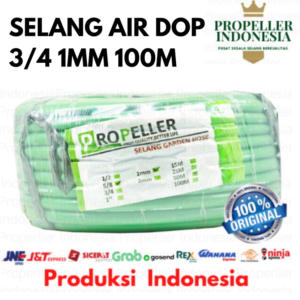 Deskripsi Selang Air Benang Dop 3/4 inch 1mm 100Meterspesifikasi=1. Diameter 3/4 inch2. Panjang 100m3. Tipe selang elastis4. MERK PROPELLER5. Tebal 1mmNotes ukuran Diameter lubang dalam1/2inch = 1,2cm/12mm5/8inch = 1,6cm/16mm3/4inch = 1,8cm/18mm1inch = 2,5cm/25mmUkuran standard untuk quick connector kran air, kran kebun / taman, dllDidesain khusus untuk tekanan lebih tinggiDipekuat dengan benang polyester untuk menahan tekananCocok digunakan diberbagai kondisi dan temperatureUmumnya digunakan pada pertanian atau aplikasi sehari – hariUkuran bervariasi untuk pemakaian yang berbedaTersedia dalam warna beningFoto produk hanyalah display, ukuran dan panjang sesuai dengan