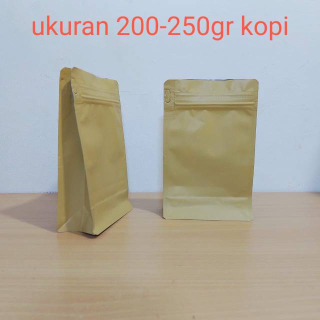 HARGA DIATAS UNTUK 100 PCSBentuk : flatbuttom Ukuran : 11x18 cm setara 750gr gula pasir 200-250gr kopiBahan: litto paperMerk : kpackSangat cocok untuk kemasan kopi, jamu ,teh