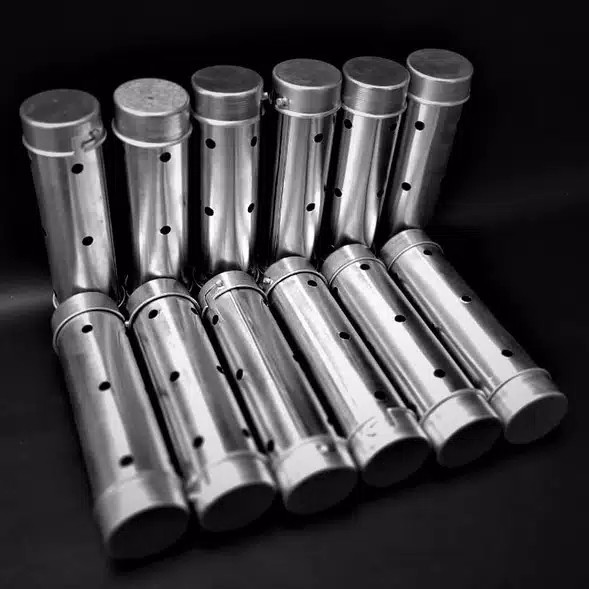 Cetakan lontong aluminium 15 x 4 cm, ringan dan praktis, sudah anti karat, 1 set = 12 buah.Packing dibungkus pakai buble wrap, dibungkus lagi dengan kardus biar aman dan di tempel "FRAGILE" agar expedisinya berhati hati dalam membawa cetakan lontong ini.Cara Membuat Lontong:Ambil satu lembar daun pisang, bentuk menjadi menyerupai silinder atau pipa dan masukkan kedalam cetakan, jangan lupa tutup dan kunci bagian bawah nya. Kenapa masih pakai daun pisang? Aroma daun pisang akan membuat lontong memiliki aroma lebih sedap dan wangi yang khas.Isi silinder atau gulungan daun pisang yang sudah dibuat dengan beras yang sudah direndam dan tiris, dengan jumlah takaran setengah(1/2) gulungan. Tutup dan kunci bagian atas nya.Masukkan bakal lontong kedalam panci dengan posisi berdiri. Tambahkan air dingin sampai bakal lontong terendam dengan air seluruhnya. Masukkan daun pandan.Rebus dengan api sedang. Setelah 2 jam direbus, tambahkan air panas sampai lontong terendam kembali seluruhnya. Setelah matang, angkat lontong dan ditiriskan dengan posisi berdiri dan diangin-anginkan supaya dingin. Jika sudah agak dingin, keluarkan dari cetakan. Gampang kan? Dan lontong nya jadi seragam semua ukurannya. Cakep.Berbahan Stainless. Panjang tabung 15 cm. Diameter 4 cm. Cetakan juga bisa digunakan untuk membuat kue Lopis.#cetakanlontong#cetakanlontongmurah#cetakanlontongmurahberkualitas#cetakanlontongmurahdanbagus#cetakanlontongmurahjakarta#cetakanlontongmurahm