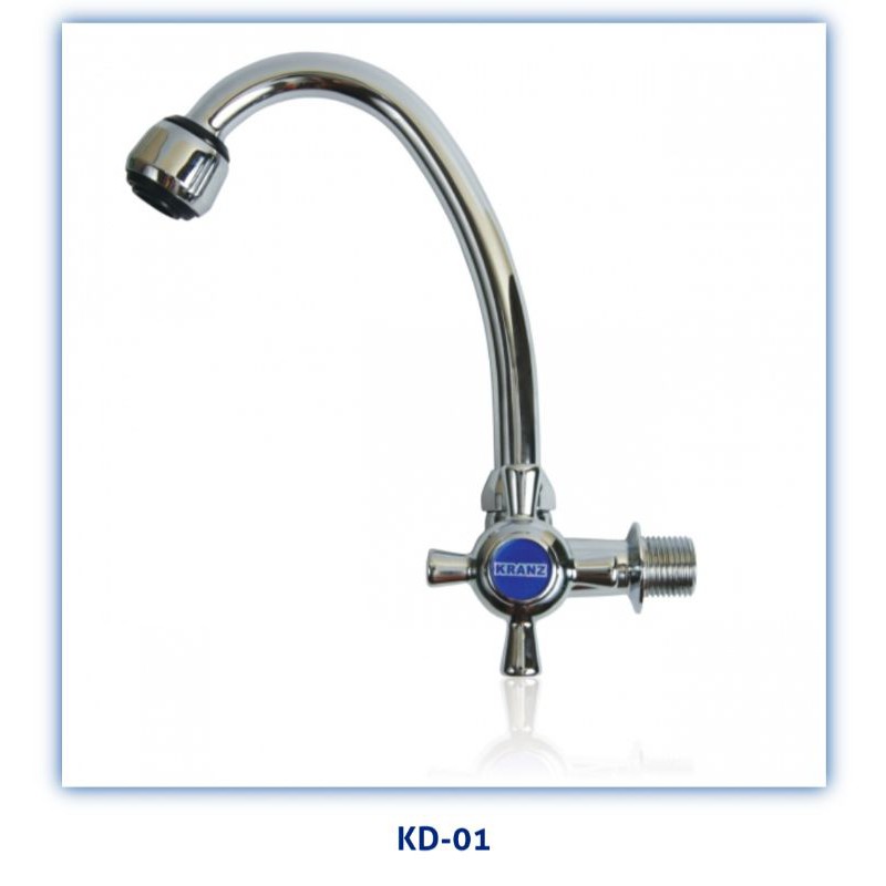 Type : KD 01 1/2"Produk ASLI KRANZ- Ukuran drat 1/2'' (standar)- Drat ke tembok- Bahan besi chrome- Model Modern & Trendy- Buka tutup kran di putar- Keluar air besar, lancar- Filter/kepala keran bisa di buka, sehingga bisa dibers