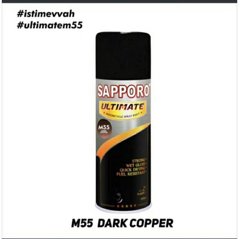 ===========================TIDAK BISA KIRIM KE LUAR JAWA===========================via darat maupun udaraKarena barang berupa cairan aerosol & mengandung gas bertekananSapporo Ultimate M55 Dark CopperIsi kemasan : 400mlRecommended u/ Warna dasar : B12 Primer GreyHasil Akhir : Metallic + DoffApa sih Keunggulan Sapporo Ultimate dibanding Sapporo 300cc ?- Tahan Bensin -User Friendly- isi 400ml- Nozzle bisa Vertikal atau Horizontal- Lebih Kuat ( Keras & Tahan Lama) Barang yg sudah dibeli TIDAK DAPAT dikembalikan atau TUKAR WARNA/REFUND!!(Kecuali Klg macet/bermasalah, akan kita ganti dengan KLG BARU dan WARNA YG SAMA) Go send / Grab send Khusus Jakarta Pkl 09.00 - 16.30 Jika produk yang diterima rusak atau tidak sesuai pesanan, bisa langsung inbox kami ya. Diharp tidak langsung memberi Ratin