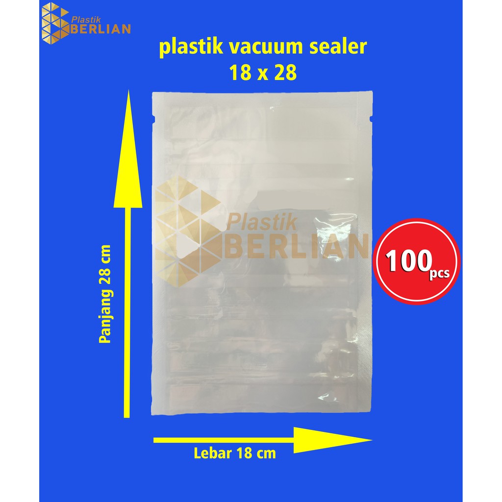 Deskripsi Plastik Vacuum 18X28 cm Promo Vacum Bag Sealer isi 100Pastikan dulu sebelum membeli alat yang kalian gunakan memang bisa DIGUNAKAN untuk semua JENIS Plastik, bukan hanya untuk 1 jenis plastik saja ( EMBOSSED )Hati-hati terjebak dengan penjual alat yang sengaja menjual alat murah, tetapi PLASTIKNYA dijual SANGAT MAHAL.ALAT yang BAIK bisa untuk digunakan semua jenis plastik, contohnya di link video kami.Kemasan plastik vacum berbahan Nylon/LL{DE yang sangat di rekomendasikan untuk produk yang di vacum seperti, kacang-kacangan, beras atau produk yang mesti di simpan di suhu beku seperti daging, ikan, baksso, dll.Spesifikasi :- Isi 100 pcs / pack- FOOD GRADE & Export quality- Bahan Nylon kualitas terbaik- Ketebalan 75 m