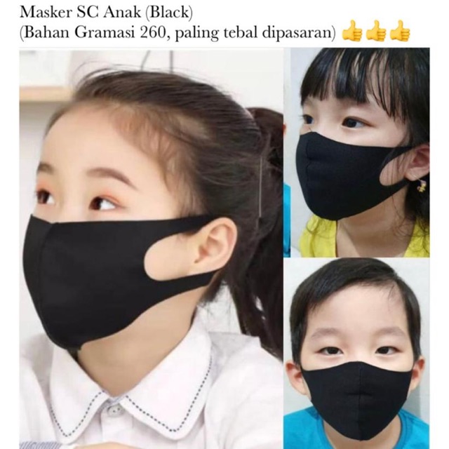 Masker SC anak, black.(water resistant)Gramasi 260,paling tebal dipasaran dijamin...Jahitan Rapi, bisa di